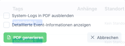 - Melder & Zeitstempel: Erfassung, wer die Meldung wann abgesetzt hat.